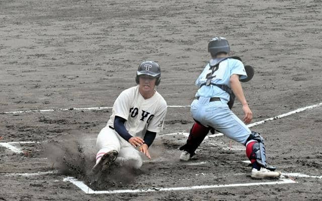 ◎…東洋大姫路は序盤の少ない好機を生かした。二回1死三塁から内野ゴロで1点先行。六回までわずか1安打だったが、先発下山が粘って終盤の追加点につなげた。近大新宮は安打数で相手を上回ったが、矢守の適時打での1点のみ。