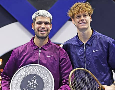 男子テニスのエキシビションマッチ シックスキングススラム(サウジアラビア/リヤド、室内ハード)は18日、シングルス決勝が行われ、世界ランク2位のJ・シナー(イタリア)が同1位のC・アルカラス(スペイン)を6-2, 6-4のストレートで下し優勝を飾るとともに、大会2連覇を達成した。