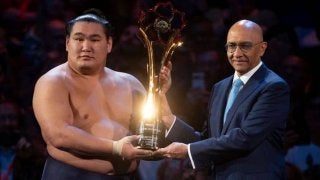 ロンドン公演を制し、優勝トロフィーを手にする豊昇龍(C)Getty Images 1991年以来、34年ぶりの開催となっ…
