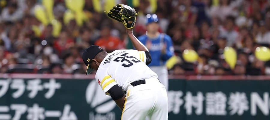 先発したモイネロは6回まで3安打1失点の好投。1点リードの7回、2死から代打マルティネスにフルカウントから四球を与えると、自身へのイラ立ちか、グラブを地面に叩きつけた。