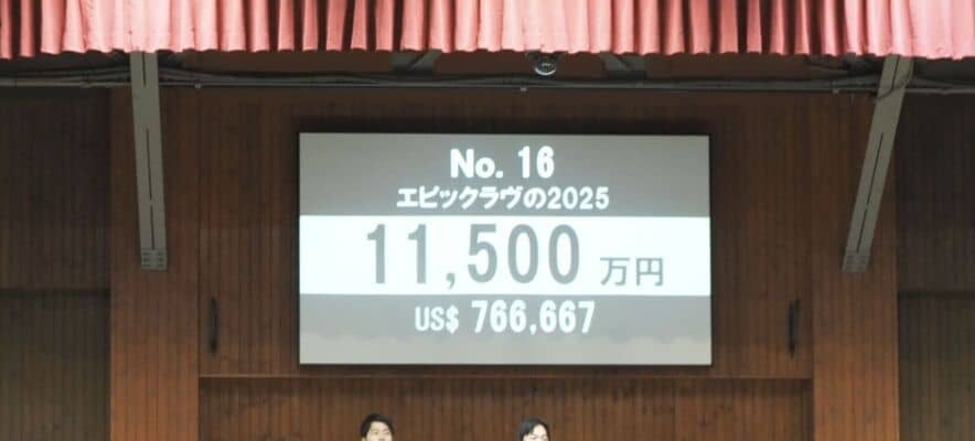 10月21日、北海道苫小牧にあるノーザンホースパークで、「ノーザンファームミックスセール2025」が開幕。当歳馬セッションにて上場番号16番・エピックラヴの2025(牡)が1億1500万円で落札された。