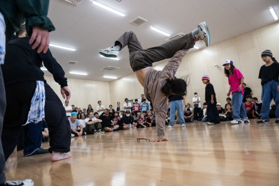 今回スケートボードと同じく、体験会と「UBE BREAKIN BATTLE Vol.3 」という大会も同時開催にてプログラムが進行されたのがブレイキン。大会ではU-15とCREWバトルの2カテゴリーが行われ山口県を中心に多くのダンサーが参加した。