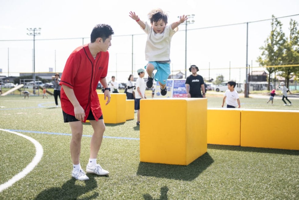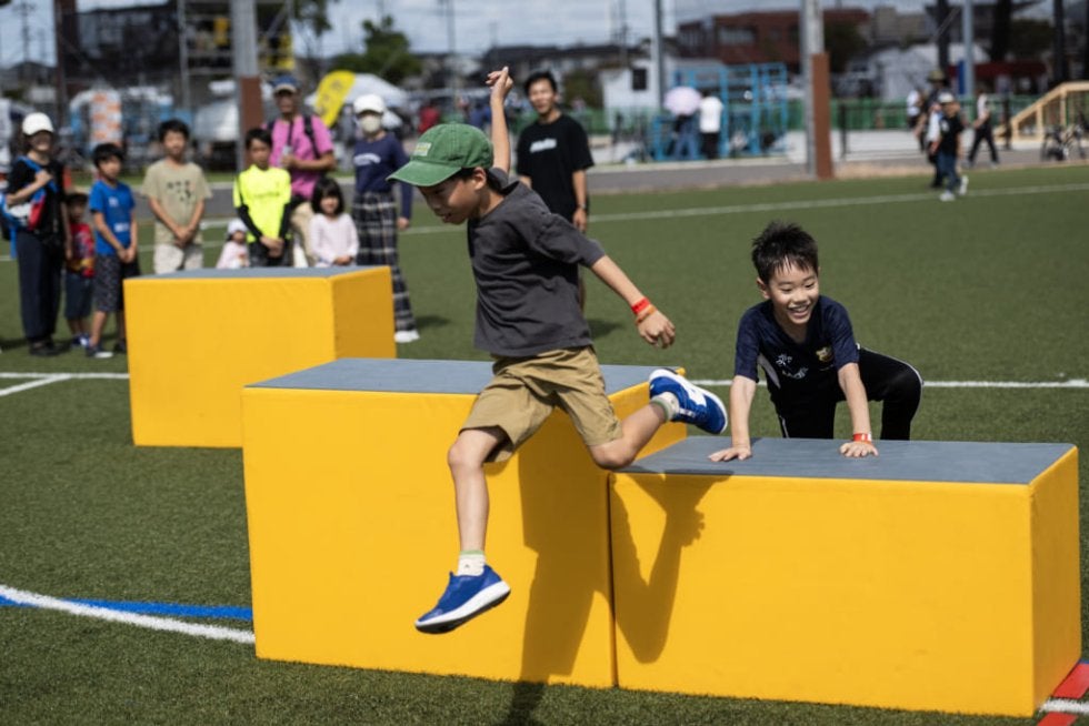 『鬼ごっこ』×『パルクール』の究極の鬼ごっこスポーツであるこのコンテンツは今回も大人気。パルクール体験会でも使用した障害物が置かれた指定エリアの中で1対1の「20秒間鬼ごっこ」が繰り広げられた。何度も列に並ぶ子どもたちやその親御さんも含めて、その組み合わせは親子や兄弟、小学生の友達同士など様々で多くの参加者が複数回トライしていた。
