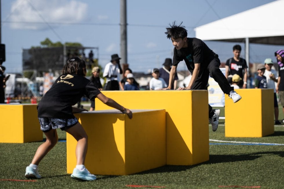 各セッションの初めには講師のトレーサーJUNによるオブスタクルを使った豪快なパフォーマンスも披露され、普段見られない動きに子どもたち中にはハイレベルな動きで障害物を超える子どもたちもおり、まさにバランス感覚や身体能力を目覚めさせる体験会になったことだろう。
