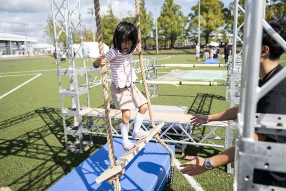 パルクールでは「走る」「跳ねる」「乗り越える」「掴まる」「バランスを取る」という5大基礎能力を伸ばし、イメージした通りに動ける機能的な身体作りを目指すアクティビティであることから、まだ柔軟性と俊敏性の高い子どもたちに人気な体験会のひとつとなった。今回用意されたセクションは細い一本橋やオブスタクルと言われる障害物。それらをバランスを取りながら渡ったり、飛び越えたりする中で初歩的なパルクールの技術やコツを教えると、意外とすんなり覚えてしまう子どもたちの習得能力の高さに講師陣が驚かされる場面も見受けられた。