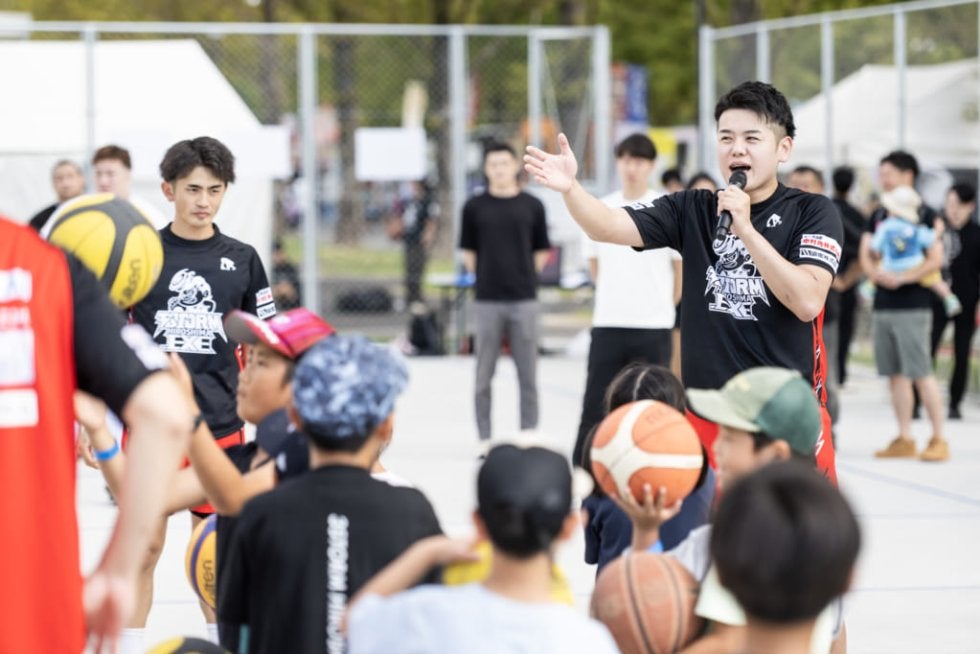 今年は昨年とは異なり小中学生向けにクリニックを開催。スケートボードと同様に今年の春、当施設にオープンした3×3のバスケットボールコートで、プロバスケットボーラーにより様々な技術を学べるこのクリニックは大盛況で一人ひとつボールを持ってプロと一緒に練習に取り組める貴重な機会となった。
