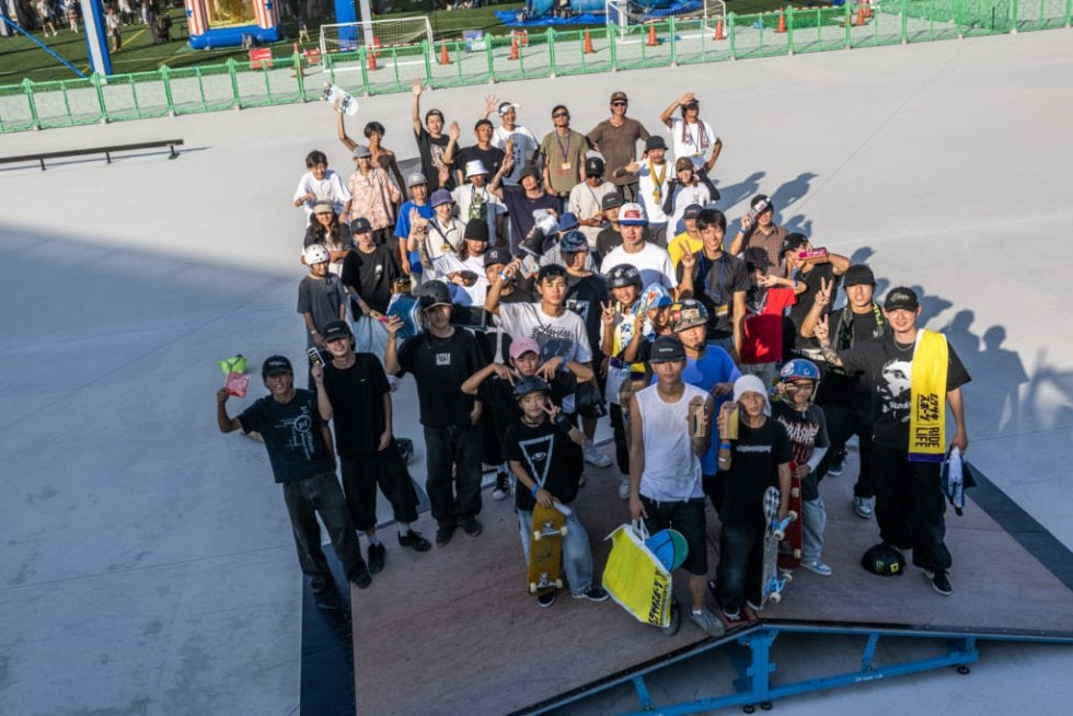 オリンピックでの日本人選手たちの大活躍も相まって、全国で大きな盛り上がりを見せ続けているスケートボード。今回は今年の春、当施設にオープンしたスケートボードパーク内に特設のセクションが設けられ、体験会だけでなく「SKATEBOARD UBE ONDA JAM 2025」という大会も同時に開催され昨年より規模を拡大して行われた。