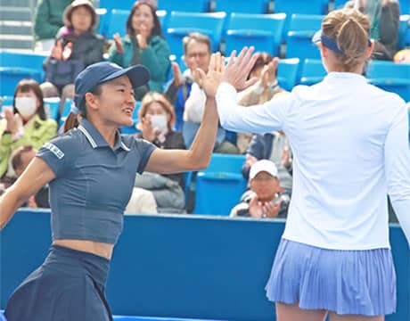 女子テニスの東レ パン パシフィック オープンテニストーナメント 2025(日本/東京、ハード、WTA500)は23日、ダブルス準々決勝が行われ、青山修子/ C・ブクサ(スペイン)組がワイルドカード(主催者推薦)で出場したB・アンドレースク(カナダ)/ V・エムボコ(カナダ)組を6-4, 6-7 (3-7), [10-8]のフルセットの激闘の末に破りベスト4進出を果たした。