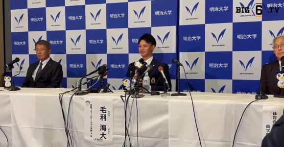 【2025ドラフト】明治大学 毛利海大(④福岡大大濠) 千葉ロッテマリーンズ ドラフト2位指名記者会見