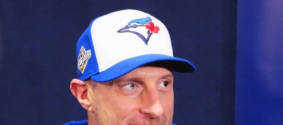 前日会見に臨んだブルージェイズのマックス・シャーザー【写真:荒川祐史】
