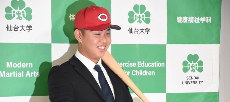 「プロ野球ドラフト会議 supported by リポビタンD」が23日、都内で開催され、仙台大の平川蓮外野手が広島から1位指名を受けた。平川は身長187センチ、体重93キロの恵まれた体格と高い身体能力を誇るスイッチヒッター。大学では入部約3か月で投手から野手に転向し、2年秋からは両打ちに挑戦した。仙台大の野手がドラフトで1位指名を受けるのは史上初の快挙だ。