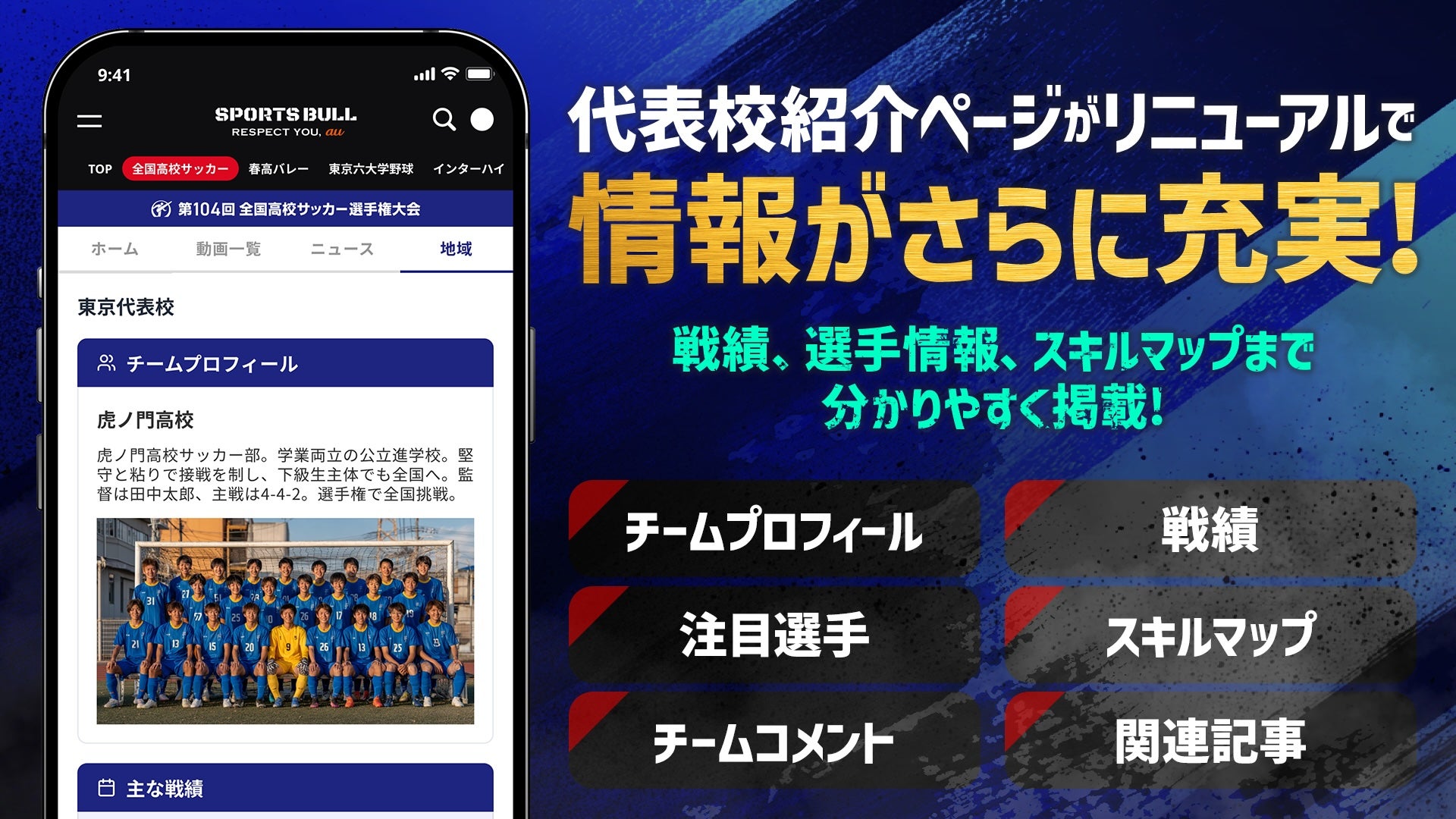 今大会から、選手や学校の魅力をより深く発信し、大会全体を盛り上げることを目的に、新たに「各代表校紹介ページ」を「SPORTS BULL」特設ページ(https://sportsbull.jp/highschool_soccer/area/)内に新設します。