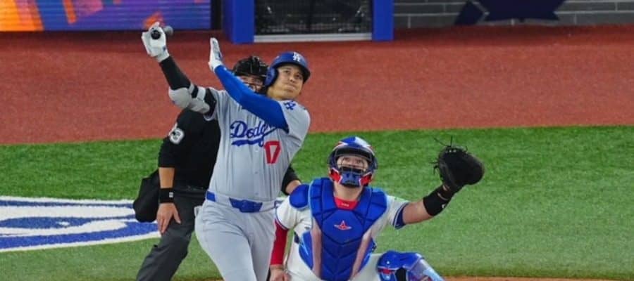 ドジャースの大谷翔平投手は24日(日本時間25日)、敵地で行われたブルージェイズとのワールドシリーズ第1戦に「1番・指名打者」でスタメン出場。7回の第4打席に自身ワールドシリーズ初アーチを放った。日本選手では松井秀喜以来2人目の快挙。ポストシーズン通算9号で、日本人最多の松井秀喜(10本)まで1本差に迫った。