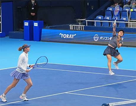 女子テニスの東レ パン パシフィック オープンテニストーナメント 2025(日本/東京、ハード、WTA500)は25日、ダブルス準決勝が行われ、青山修子/ C・ブクサ(スペイン)組は第3シードのA・ダニリナ(カザフスタン)/ A・クルニッチ(セルビア)組に2-6, 3-6のストレートで敗れ準決勝敗退となり、決勝進出とはならなかった。