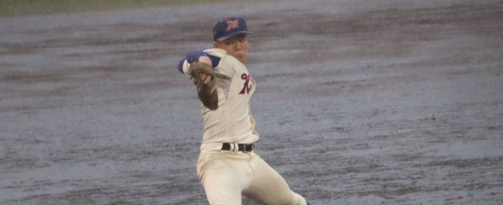 この日のヒーローは背番号11の左腕・宮田 斗亜投手(2年)だった。直球、変化球を器用に投げ分け、前回の試合で2本塁打を放ち、勢いに乗る橿原学院打線を7回までパーフェクトに抑え、8回に四球を与えて、完全試合は途切れたが、9回表、空振り三振、四球、空振り三振、ニゴロに抑え、ノーヒットノーランを達成した。試合終盤から強い雨が降る中でも最後まで集中力が途切れない素晴らしい投球だった。