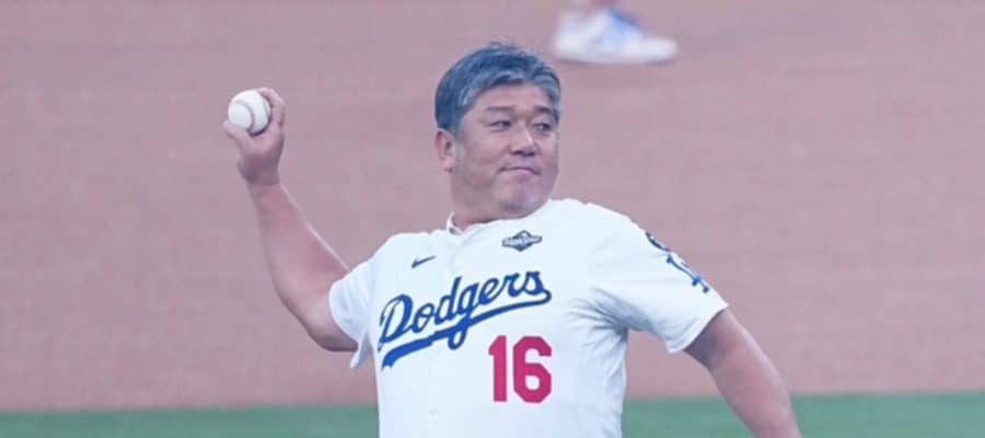 ドジャース-ブルージェイズのワールドシリーズ第3戦が27日(日本時間28日)にドジャースタジアムで行われ、野茂英雄氏が始球式を務めた。背番号16のドジャースユニホームで登場。捕手役の山本由伸投手に対し、トルネード投法は披露しなかったが、オーバースローでの一投にかつての本拠地は大歓声に包まれた。投球後には山本とガッチリ握手し、デーブ・ロバーツ監督とハグを交わした。