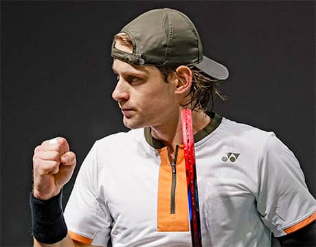勝利を決めた瞬間、ベルグスは“ムーンウォーク”のパフォーマンスを披露して観客を沸かせた一方で、ミケルセンはラケットを破壊し、対照的な姿を見せた。