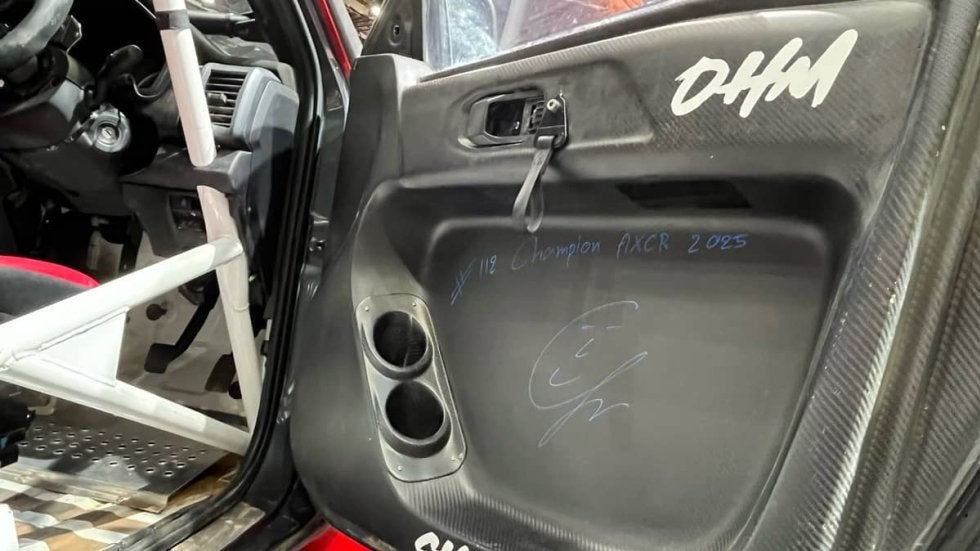 過酷なクロスカントリーラリーイベントを走り抜いた車両を間近に見ることができるのは、貴重な機会。ステアリングやドアの内部には、ヨーター自筆のサインも入っているほか、ブースには優勝トロフィーも展示されている。