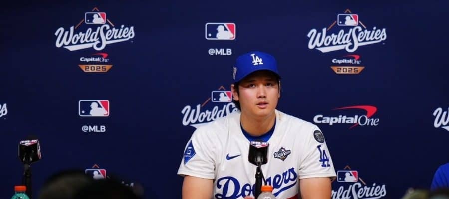 足を踏み出す場所が見当たらなかった。ドジャースの大谷翔平投手は28日(日本時間29日)、ブルージェイズとのワールドシリーズ(WS)第4戦に「1番・投手」で投打同時出場した。WS初登板は7回途中まで6奪三振1四球6安打4失点。ポストシーズン(PS)初黒星を喫した。試合後には会見場に姿を現した。