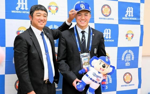 プロ野球のドラフト(新人選択)会議で中日ドラゴンズに4位指名された明秀日立高の能戸輝夢(きらむ)選手(18)は30日、茨城県日立市の同校で球団スカウトらからあいさつを受けた。