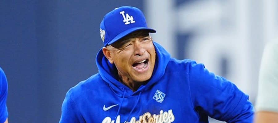 試合前日の練習に参加したドジャースのデーブ・ロバーツ監督【写真:荒川祐史】