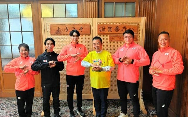 耳が聞こえない、聞こえにくい人のための「東京2025デフリンピック」が今月開催されるのを前に、滋賀県ゆかりの4選手とトレーナーが10月29日、県庁に三日月大造知事を訪ね、「必ずメダルを取ります」と誓った。