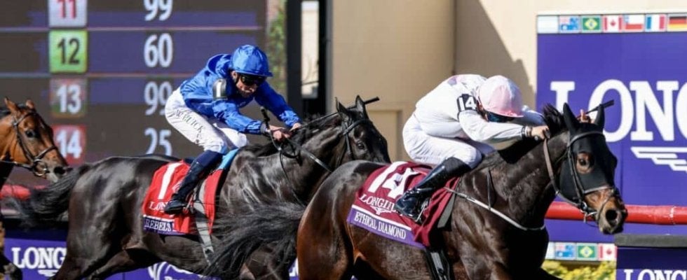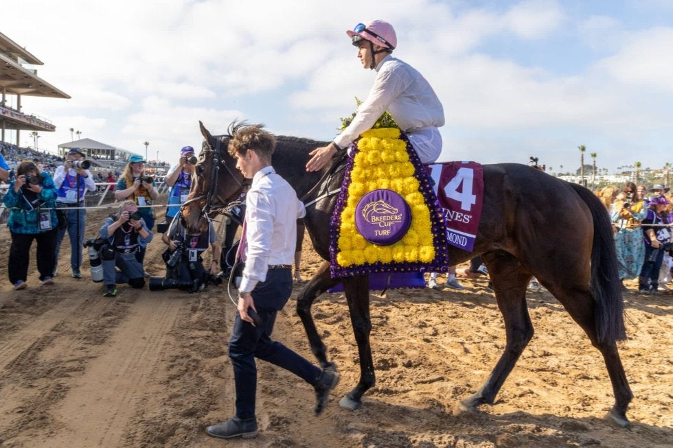 現地時間11月1日、アメリカ・デルマー競馬場で行われた、ブリーダーズターフ(G1・芝2400m)は、D.マクモナグル騎乗、平地障害の二刀流エシカルダイアモンド(せん5・W.マリンズ)が波乱を巻き起こした。勝ちタイムは2:25.45(良)。