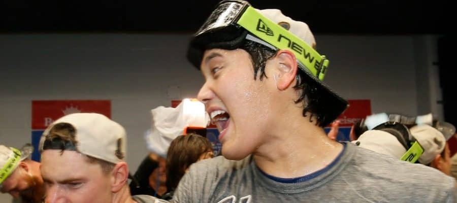 シャンパンファイトで盛り上がるドジャース・大谷翔平【写真:ロイター】
