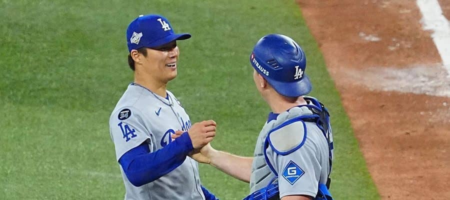 バッテリーを組んだドジャース・山本由伸(左)とウィル・スミス【写真:荒川祐史】