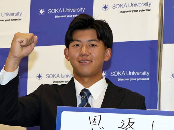 抽選で阪神が交渉権を獲得した創価大の立石 photo by Sankei Visual