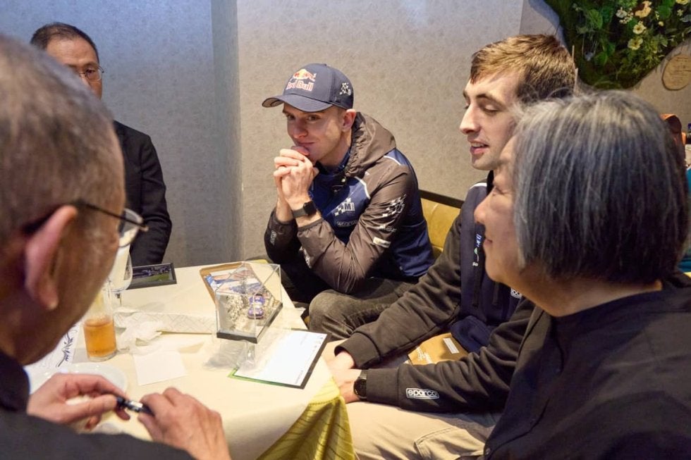 ラリープラス編集部によるラリーファンのためのイベント「ラリープラスメンバーズミーティング」、今年もWRCラリージャパンを翌週に控えた11月1日、都内レストランで開催しました。ゲストには、告知どおりMスポーツ・フォードからジョッシュ・マカリアン、そしてコ・ドライバーを務めるオーン・トレーシーも緊急参加! 平松秀樹編集長、特派員・翻訳・通訳、そしてWRC現場からのホゲホゲ日記が大人気の「けいこさん」こと伊藤敬子さん、編集部スタッフ一同が参加して、今年も賑やかなイベントとなりました。