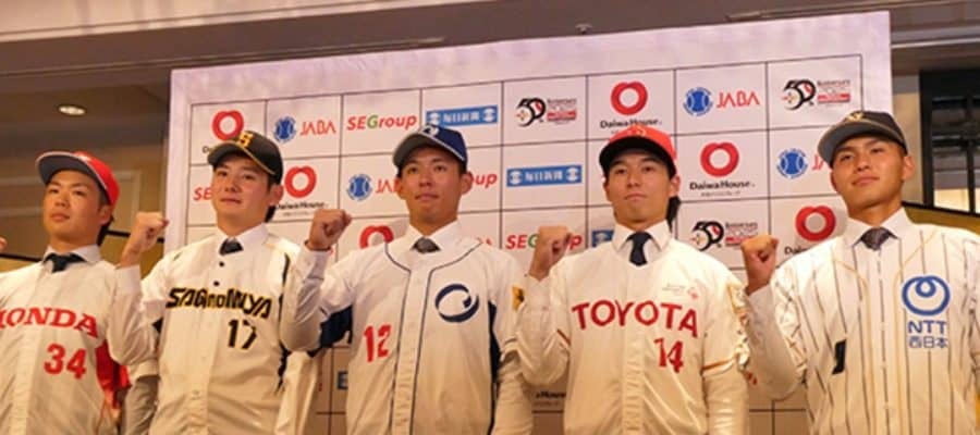 10月28日から、京セラドームにて「第50回社会人野球日本選手権大会」が開催されている。1974年の第1回から今年で50回を数え、節目を迎える本大会。同23日の「2025 プロ野球ドラフト会議 supported by リポビタンD」でNPB球団から指名を受けた選手では、8選手が出場。27日に行われた開幕前記者会見には5選手が登壇し、翌日から始まる大会への意気込みを語った。