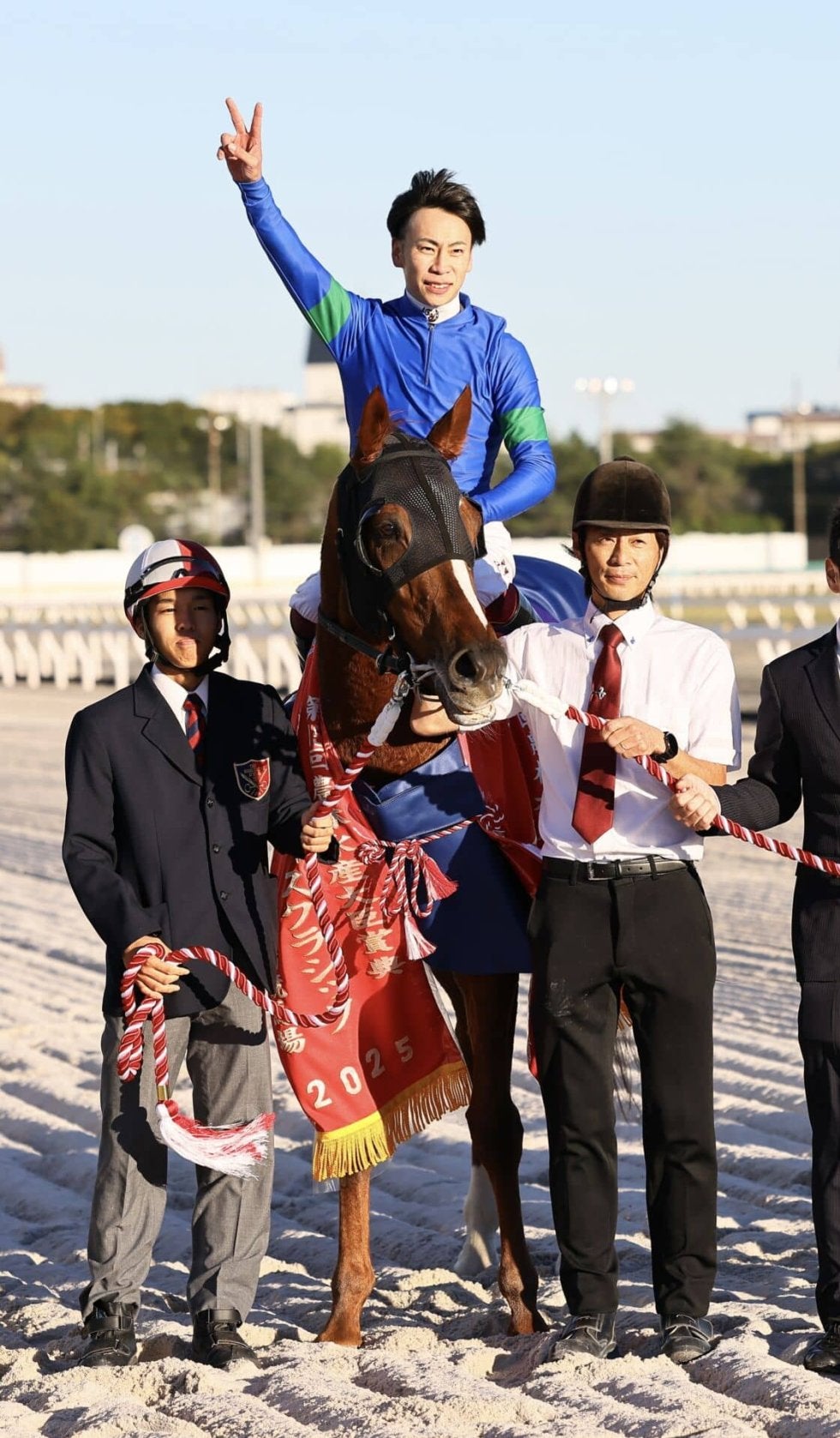 「本当に嬉しいです!最近ちょっと牝馬らしく気の難しさも出してしまっていて、なかなか思うような競馬ができていなかったんですけど、ここに来てもまたもうひと花咲かせてくれて、本当に馬にはもう頭が下がる思いです。雰囲気はいつも通りちょっとテンション高かったんですけど、ナイターでなかったり、気温もマシになったので、馬にとってはすごくベストな条件だなとは思っていました。ここ最近はちょっと思うような競馬できていなかったですし、きょうは何がなんでも逃げるというつもりでした。馬にとってはすごく苦しい展開でしたけど、あえて息を入れずに、もう淡々としたペースを刻もうと心がけて騎乗しました。最後は、ペースも淡々と刻んだことで、馬はすごく苦しくてペースダウンしてしまっていたんですけど、なんとか馬にはもう頼むから頑張ってくれという思いで必死に追って、本当に馬もよくそれに応えてくれて、本当によく踏ん張ってくれました」