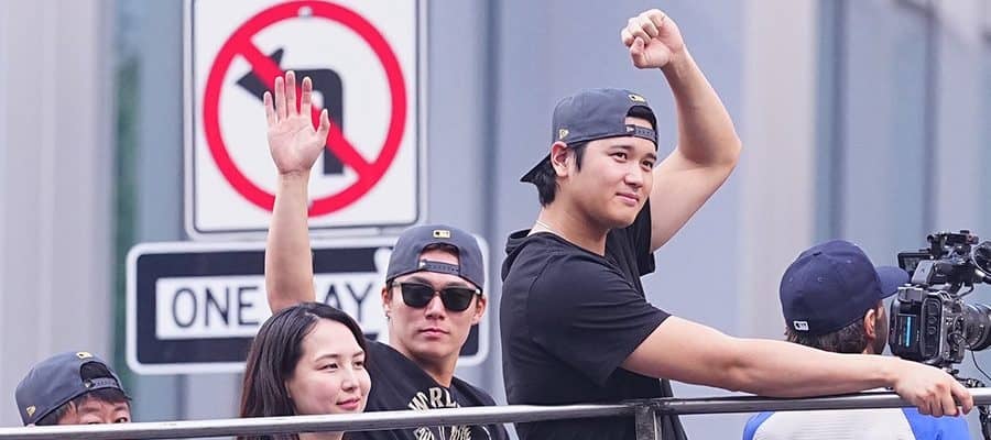 大谷はこの日、ワールドシリーズ制覇の記念Tシャツを着用して登場。青いジャケットの真美子夫人と共に参加し、笑顔を見せていた。バス上ではワトソンさんのインタビューに応じ「3回目に向けて切り替えているので」とワールドシリーズ3連覇を誓った。