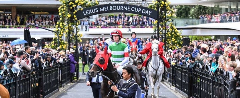 現地時間11月4日、オーストラリア・フレミントン競馬場で行われたメルボルンカップ(G1・芝3200m)でJ.メルハム騎…