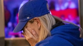 ドジャースに敗れ、悲嘆に暮れるブルージェイズファン(C)Getty Images あと一歩で世界一を逃したブルージェイズ…