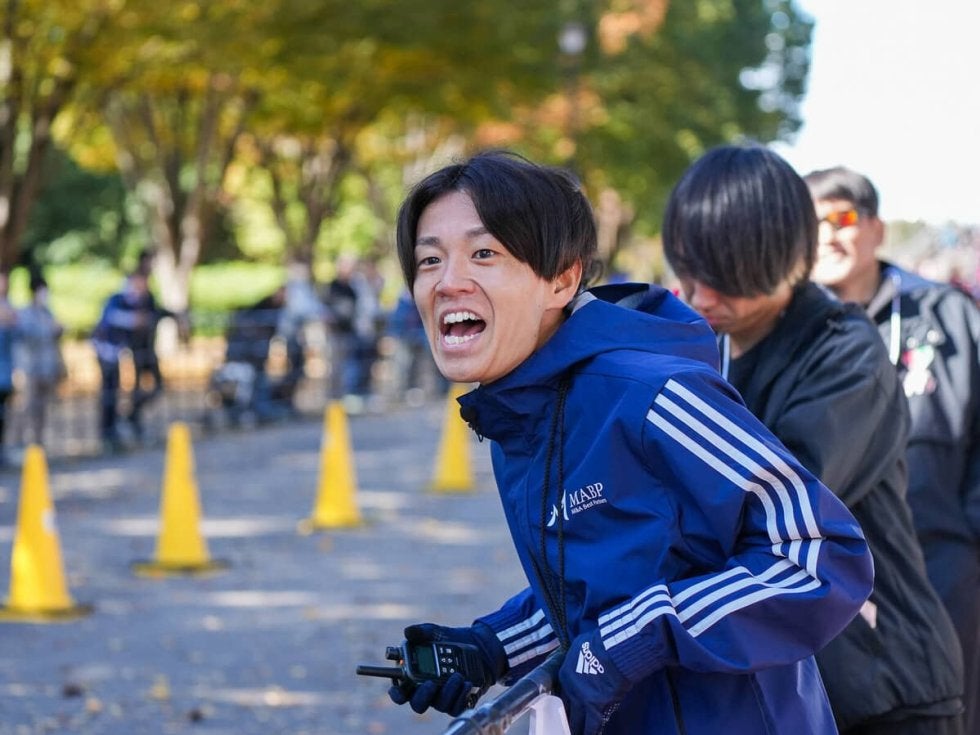 コーチボックスで待っていた神野大地(32歳)の声が大きく響く。競技場へと向かう背中を見届けると、神野自身もゴール地点に急いだ。