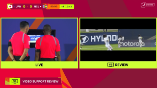 とくに接触があったわけでもないシーンだっただけに、実況の原大悟氏も、解説の名良橋晃氏も「え?なに?リクエスト?」と困惑。実は日本のベンチがFVS(VARに代わるリクエスト式のビデオ判定)を要求しており、審判団はそのままビデオ検証に入った。