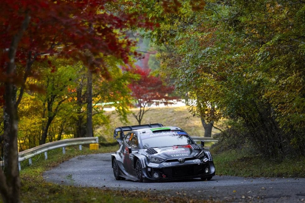 WRC第13戦ラリージャパン(ターマック)のデイ2金曜日SS7までを終えて、セバスチャン・オジエ、勝田貴元、エルフィン・エバンスの3台が10秒少しの差で1-2-3を形成、トヨタのホームランドでの本格的な戦いを好位置で発進した。特に自国ラウンドでの優勝に期待がかかる勝田は、必要以上のリスクを負わずにここまで戦っている。一方、木曜日トップで終えていたカッレ・ロバンペラは、SS3で足まわりにダメージを負ったが、破損箇所に応急処置を施してリタイアにはならずに走り続け、1点でも多くのポイントの獲得を目指している。