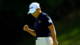 出だし1番(パー5)でバーディを先行すると、3番(パー3)は11m、6番も7mを沈めてバーディを奪いガッツポーズを作った。「秋の良い景色を見ながらプレーできた。風を読むのが難しかったが、前半は長いパッティングも入った」と振り返る。