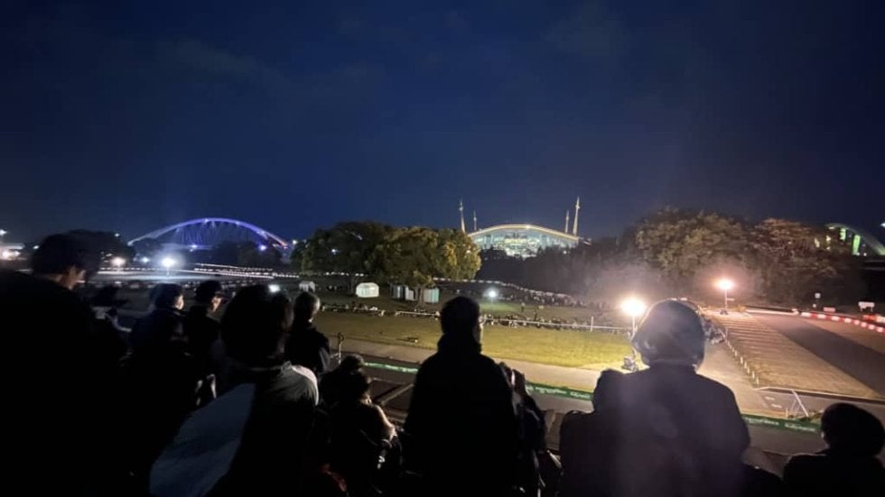 競技3日目最後のSS14は、豊田スタジアム横を流れる矢作川周辺に今回から設けられた3.05kmのギャラリーステージ『Toyota City SSS』。日が暮れるなか、カッレ・ロバンペラを先頭にライトポッドを装着したラリーカーが闇を引き裂いて駆け抜けていく。