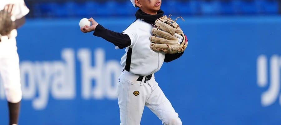 ボールに力を伝えるには、リリースの位置が重要になる。子どもたちが陥りやすい「球が抜ける」原因の一つは、これが適切でないことにある。日本一も経験した中学硬式の強豪「関メディベースボール学院」でトレーナーを務める藤田真悟さんは「肩甲骨よりも斜め前が一番力が入る位置になります」と説明する。体を前に出すだけでは力は伝わらず、真横のリリースでも力が入りにくいという。