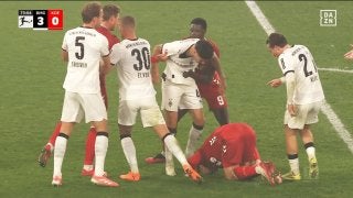すると、ディクスは倒れているヨハンネソンに向かって怒鳴るような仕草で煽りまくる。明らかに挑発しすぎなディクスをケルンのDFセバスティアン・セブロンセンとFWラフナール・アヘが突き放し、間に入ったボルシアMGのDFニコ・エルヴェディも交えた小競り合いが発生した。挑発した張本人であるディクスは突き飛ばされ、その場で顔面を押さえながらうずくまっていた。