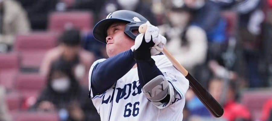 渡部は第1打席で今季は日本ハムでプレーした石川直也投手と対戦。2球で追い込まれたが、5球目を捉えると、打球は左翼席上部の壁にぶち当たった。球場はどよめきに包まれた。