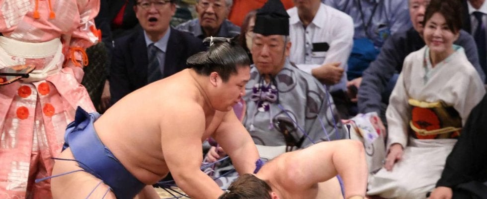 立ち合いで左に変化し、関脇安青錦を送り倒し。初日からの連敗を4で止めた。