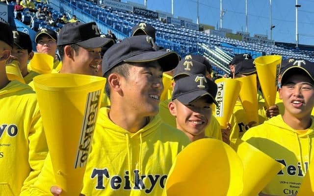 帝京は八回に逆転を許して3―6で敗れた。応援団長を務める野球部の平井薫流(1年)は「仲間の力を借りて一緒に応援できるのは心強い。帝京長岡が(地区大会を)優勝して、『本家』が頑張らないと、と思ってやってきた。長岡にも負けたくない」と力を込めた。(野田枝里子)