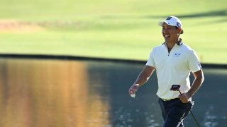 この日最初のバーディだった12番では8m、13番(パー3)で6mをカップに流し込んだ。「67」でまとめる最終18番(パー5)のバーディ締めも8mを沈めたもの。堀川未来夢はそれでいて、「グリーンを読み切れていない。小さな傾斜があって、一筋外れたりする」と不満げだった。