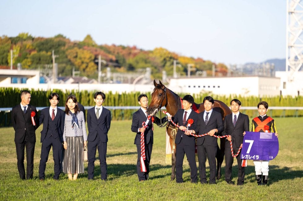 エリザベス女王杯を勝ったレガレイラは、父スワーヴリチャード、母ロカ、母の父ハービンジャーという血統。北海道安平町・ノーザンファームの生産馬で、馬主はサンデーレーシング。通算成績は11戦5勝。重賞は2023年ホープフルステークス(G1)、2024年有馬記念(G1)、2025年オールカマー(G2)に次いで4勝目。鞍上の戸崎圭太騎手、管理する木村哲也調教師は同レース初勝利。