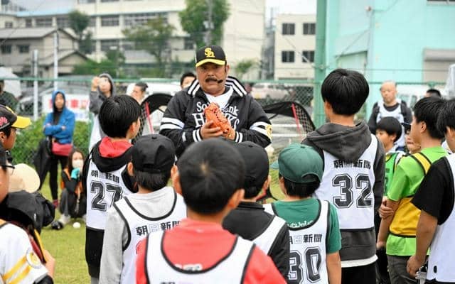 藤本さんや、投手だった馬原孝浩さん(43)、森福允彦さん(39)が指導。子どもたちは投球や捕球、ボールを狙った的に投げ込む「ストラックアウト」を楽しんだ。