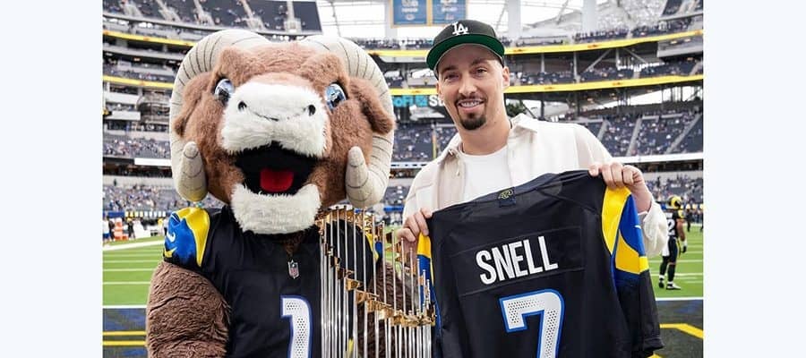 スネルは同じロサンゼルスを本拠地に置くラムズに応援に駆け付けた。チャンピオントロフィーを持ち、選手やマスコットと交流。試合は妻と子どもと観戦し、ジャンボトロンに映されるとファンも大きく盛り上がった。